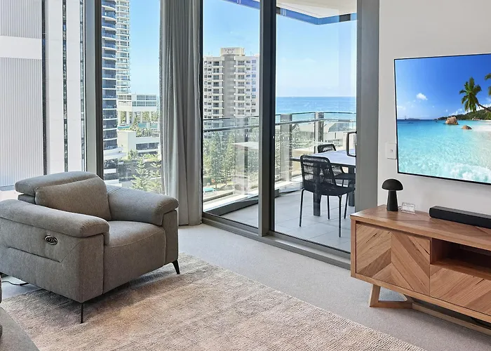 Situé dans le quartier "Broadbeach" à Gold Coast, l'appartement Signature Ocean Views 9Th Floor 2 Bed 2 Bath Free Parking Gold Coast spacieux se trouve à seulement 450 m des Jupiters Hotel and Casino et à 7 km du Stade Cbus Super Stadium, recommandé aux amateurs de sport. Bénéficiant d'un emplacement à quelques pas du Centre de conventions et parc des expositions de Gold Coast, le domicile de 91 m² offre à ses clients un hammam, un jacuzzi et un sauna.